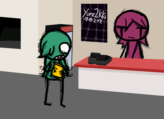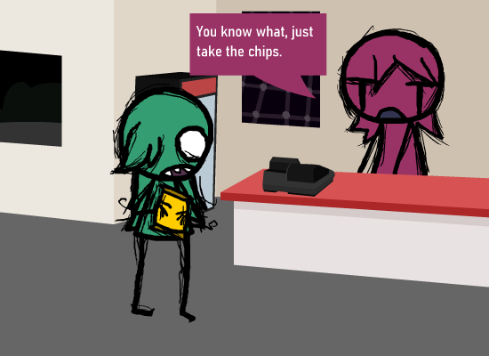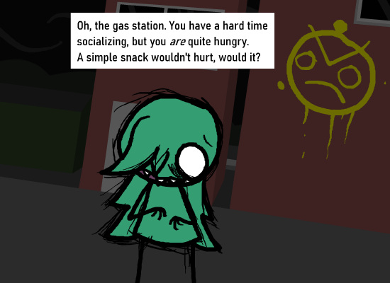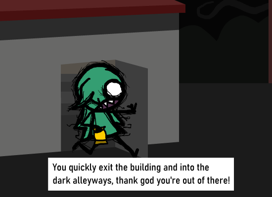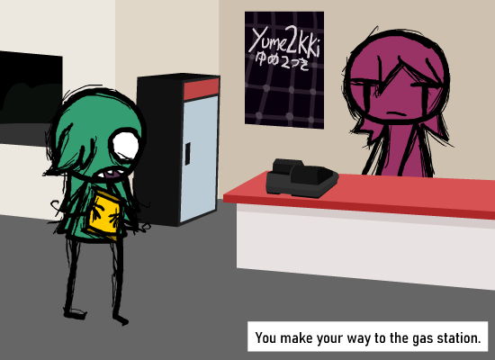 > Immediately rush out to the door, exiting from the gas station.